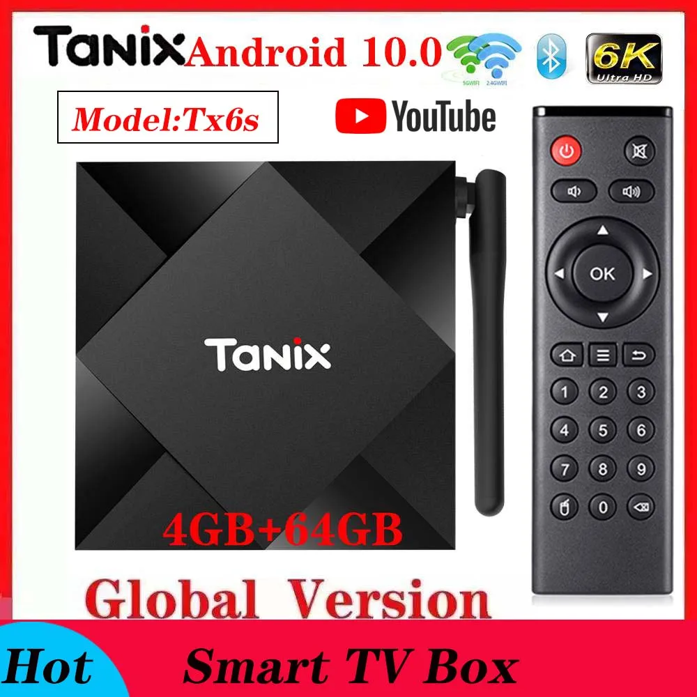 TX6S Android 10,0 ТВ коробка 4 Гб 64 Гб Allwinner H616 Tanix Android 10 QuadCore 6K двухъядерный процессор Wi-Fi TX6 медиа-проигрыватель Youtube