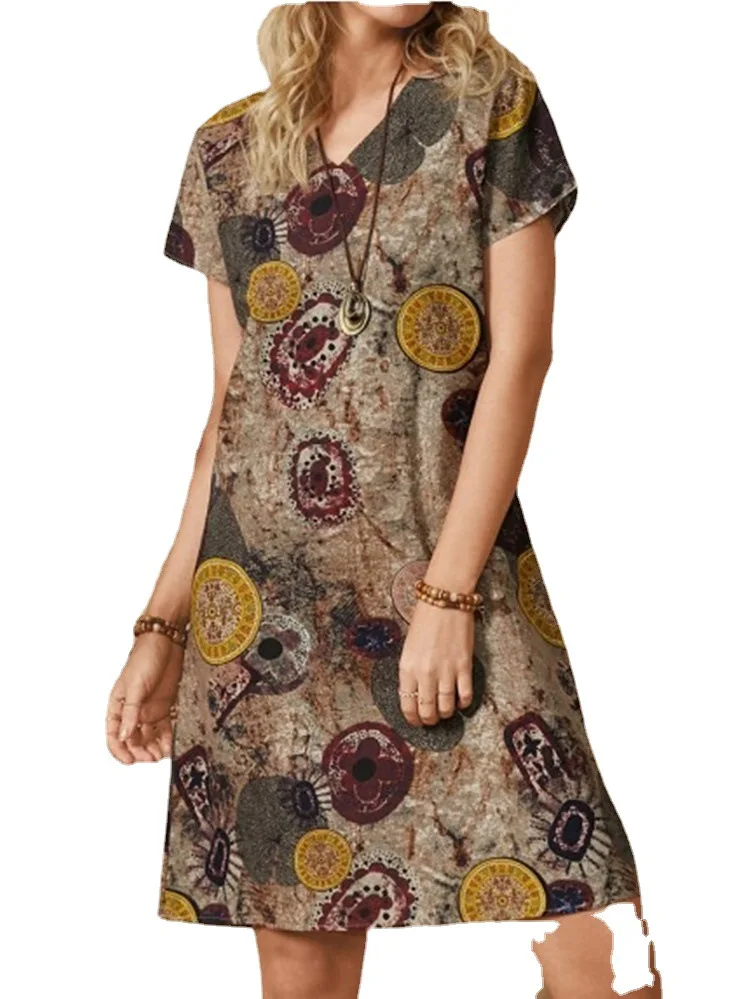 Платье женское из хлопка и льна, с коротким рукавом и V-образным вы...