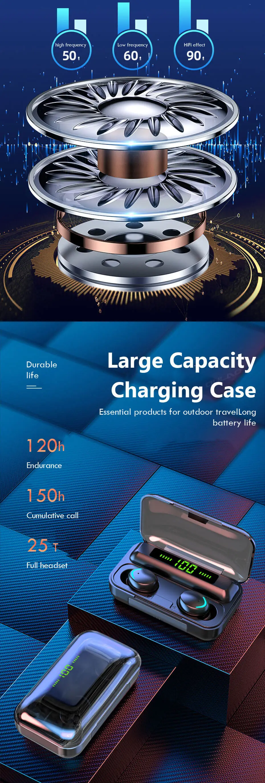 JFWEN F9-5C Bluetooth 5,0 наушники зарядка коробка Беспроводной 9D ...