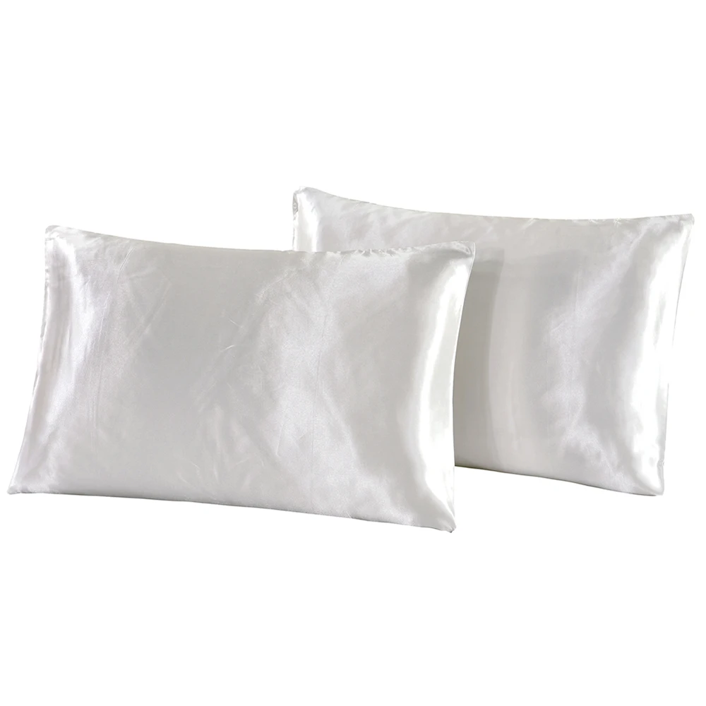 Шелковая атласная наволочка 2 предмета, простые однотонные постельн...
