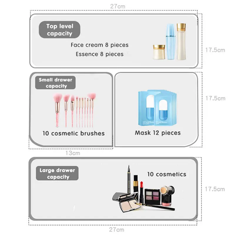123 слоя Косметика для макияжа Органайзер для ювелирных изделий Дисплей коробка большая Ёмкость Водонепроницаемый чехол ящик Рабочий стол Красота держатель для хранения