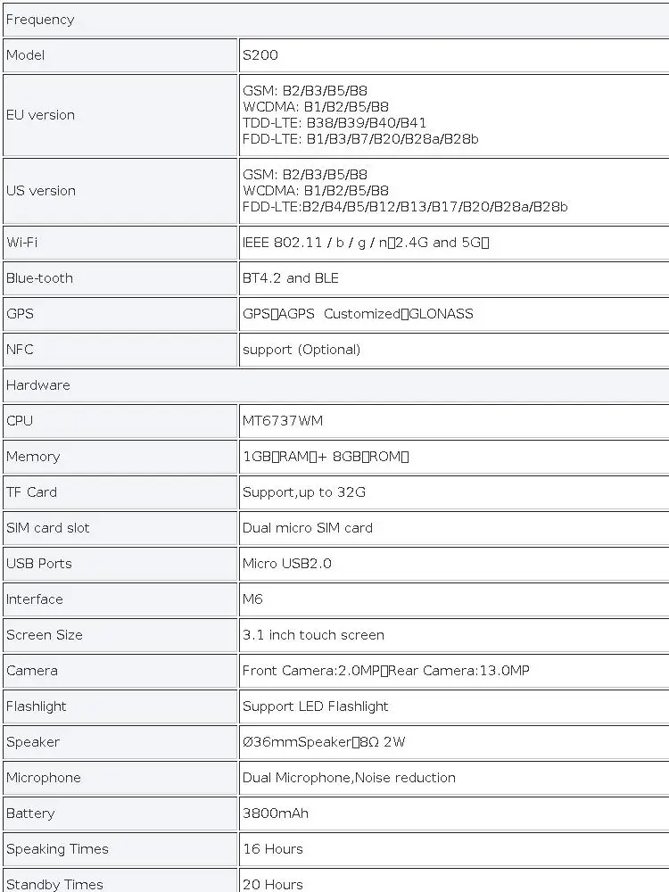 Размер экрана: S200 является эффективным и многофункциональным канальным радио для профессиональных пользователей через 2G/3G/4G/WLAN сети. Вместе с 3,1 дюймового дисплея, S100 принимает компактный и легкий дизайн с Встроенная антенна.