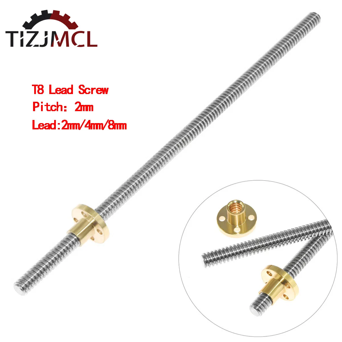 Свинцовый винт с медной гайкой для 3D принтера CNC T8 для свинцовых гаек Reprap 2 мм4 мм8 мм12 мм14 мм в длину 100 мм200 мм300 мм400 мм500 мм мм
