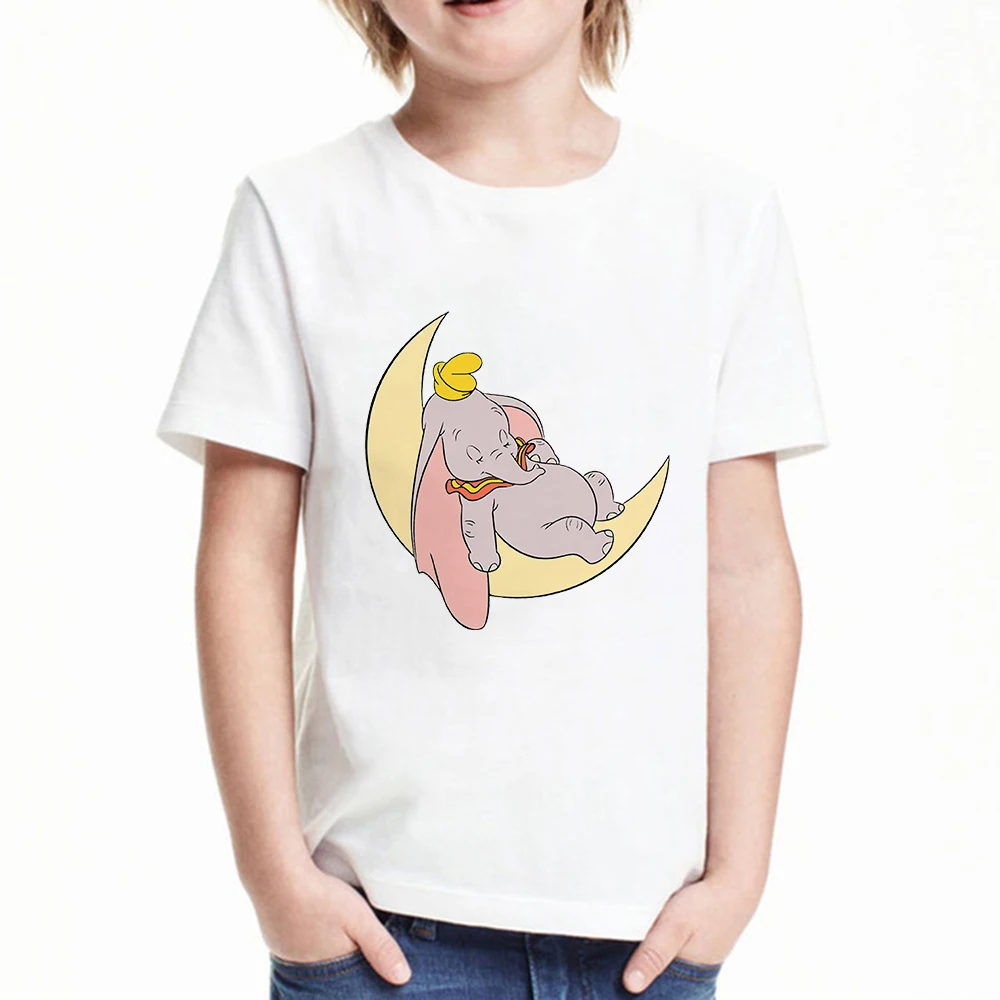 Футболка для мальчиков слон Дамбо топ с мультяшным принтом Harajuku Модная Белая Летняя кавайная футболка с коротким рукавом для маленьких девочек детская одежда