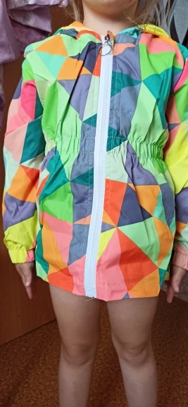 Курточка СУПЕР!!! На прохладную летнюю погоду в самый раз. Слегка туговата резинка на поясе, думаю будет задираться вверх. Большой капюшон, рукава с небольшим запасом на вырост. Нам ещё только 5 мес.. Рекомендую! Смотрится ОЧЕНЬ ОЧЕНЬ ДОСТОЙНО!!!