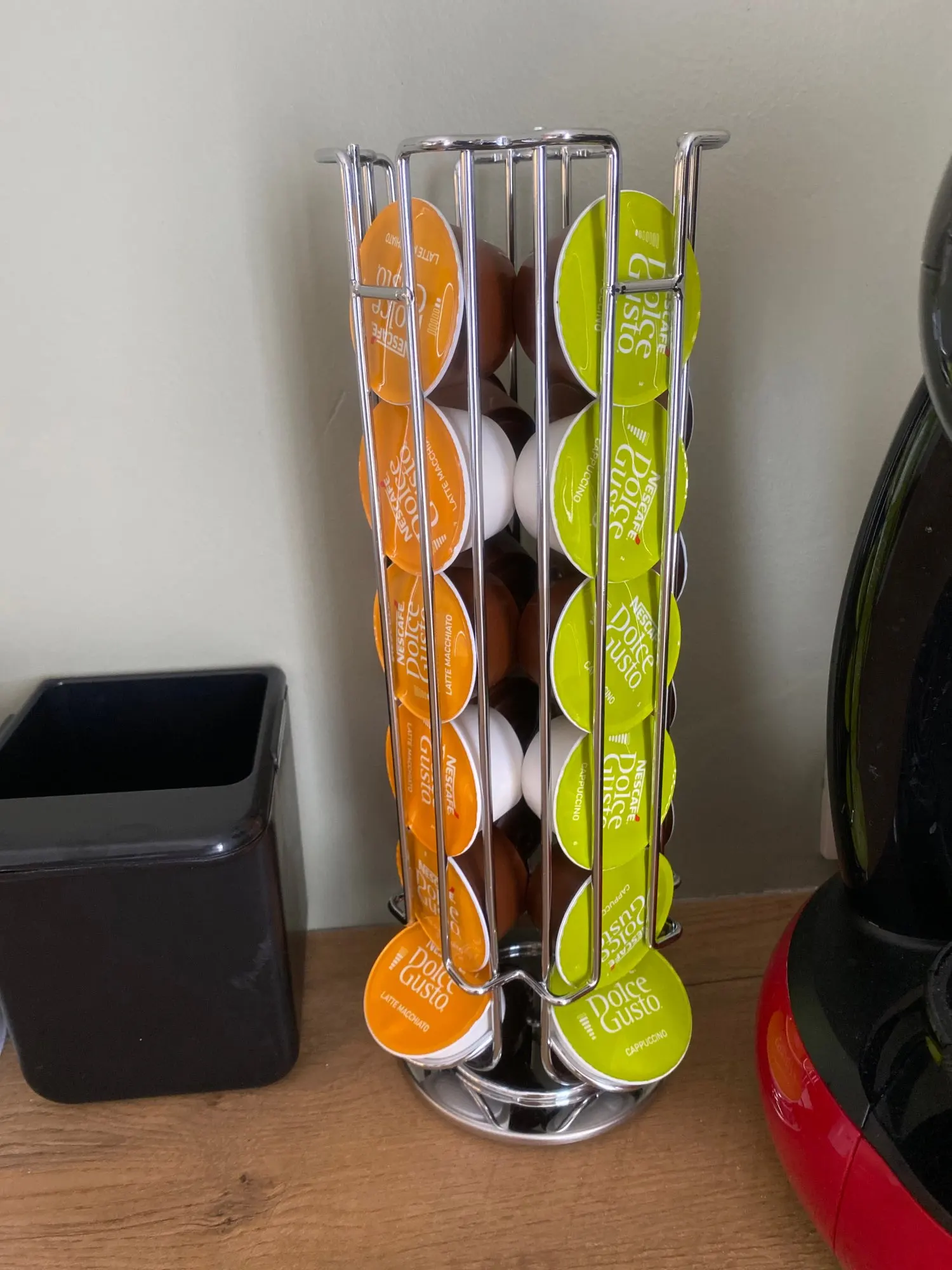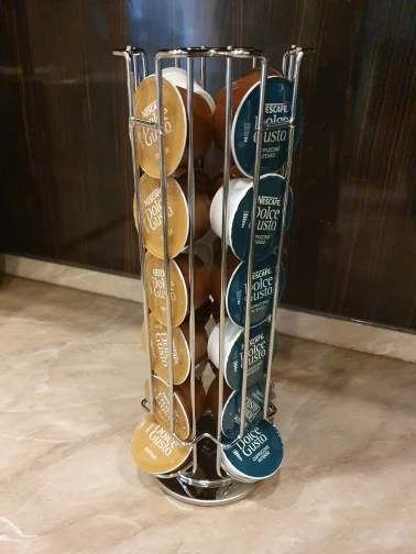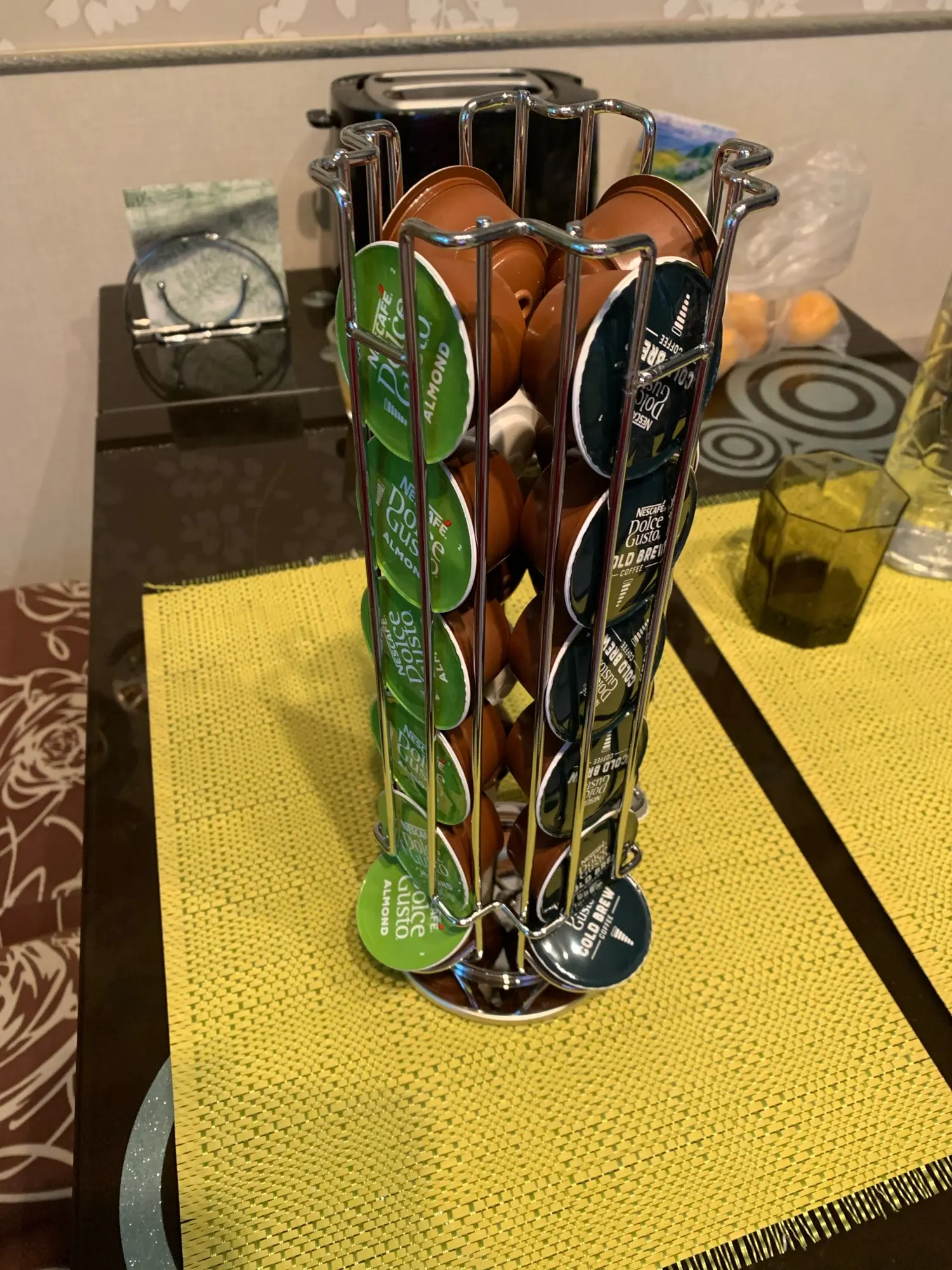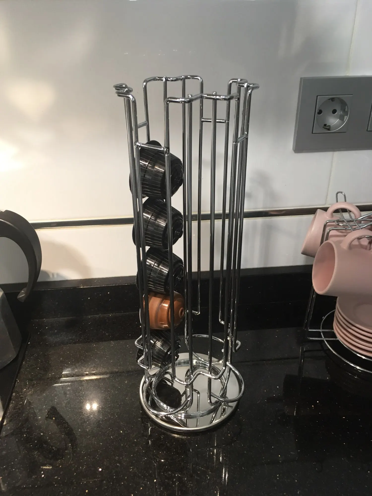 Заказ прибыл очень быстро, через несколько дней он был у меня дома. Это было очень хорошо упаковано, и это хорошего качества. Капсулы кофе Dolce Gusto подходят идеально, а вращающаяся основа работает очень хорошо. Как описано, отлично смотрится на моей кухне. Я очень рекомендую это и продавца тоже. Большое спасибо. I Am Happy With My purchase.