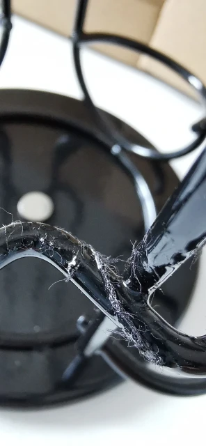 Черный материал на ножке снизу похоже из бумаги - от попадания воды разлагается и легко стирается. Качество окраса (хромирования) не идеально