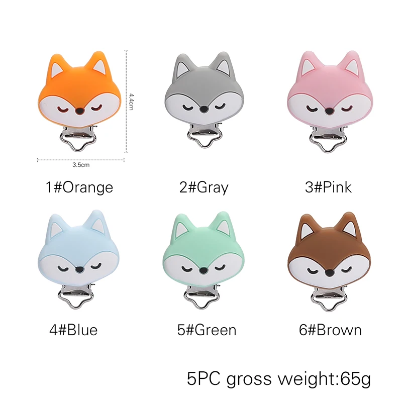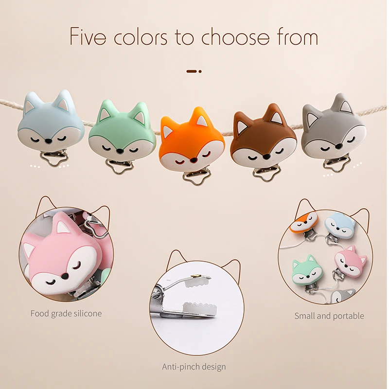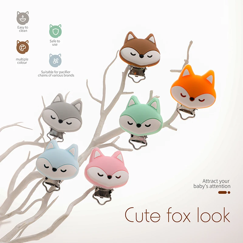 Силиконовая цепочка для соски, с мультяшным изображением лисы, 5 шт.