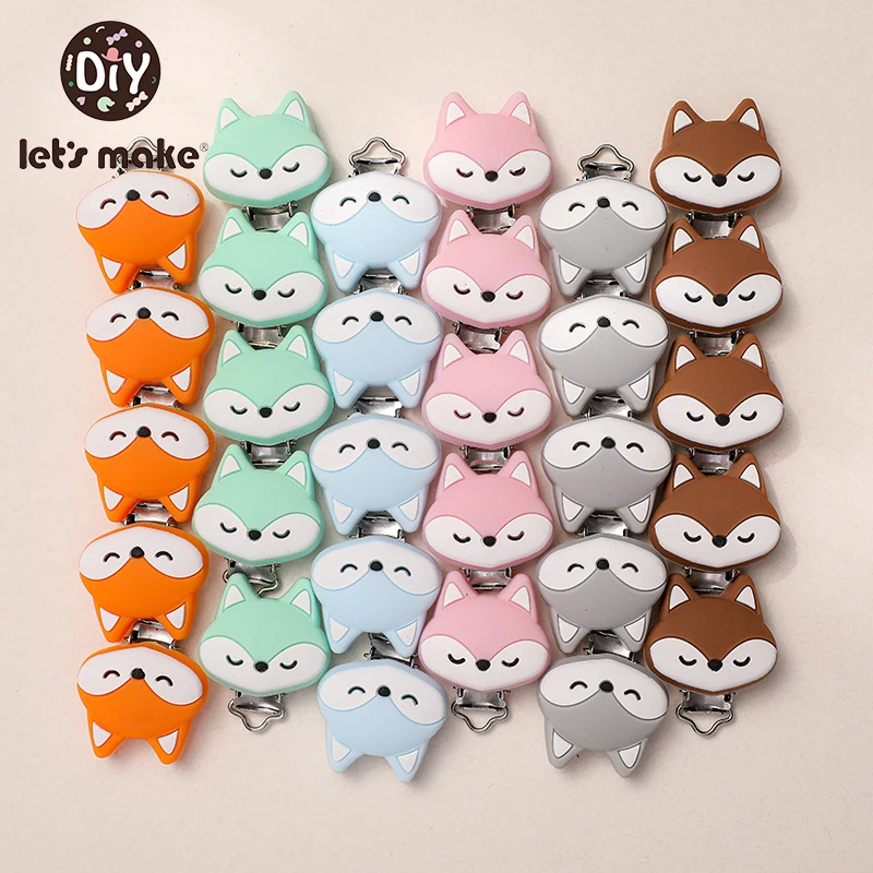 Силиконовый зажим для соски let's make Fox, 3 шт.компл., силиконовый зажим для соски без БФА, цепочка для детских сосок, аксессуары для самостоятельной сборки