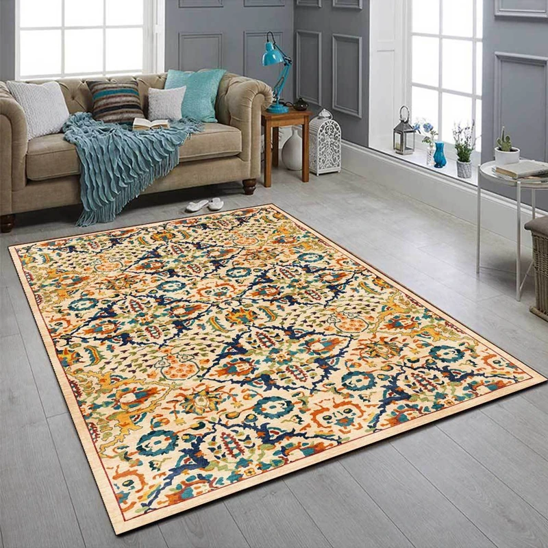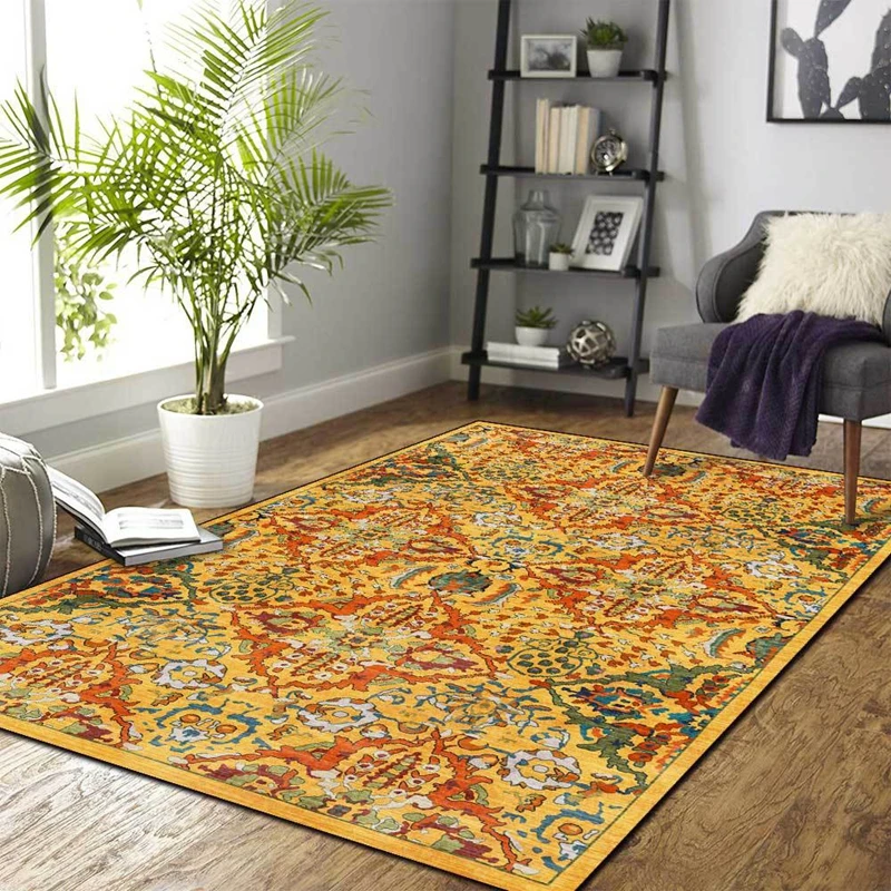 Ретро этнический ковер персидский геометрический цветок желтый зеленый принт для гостиной Противоскользящий напольный коврик для спальни прикроватный коврик