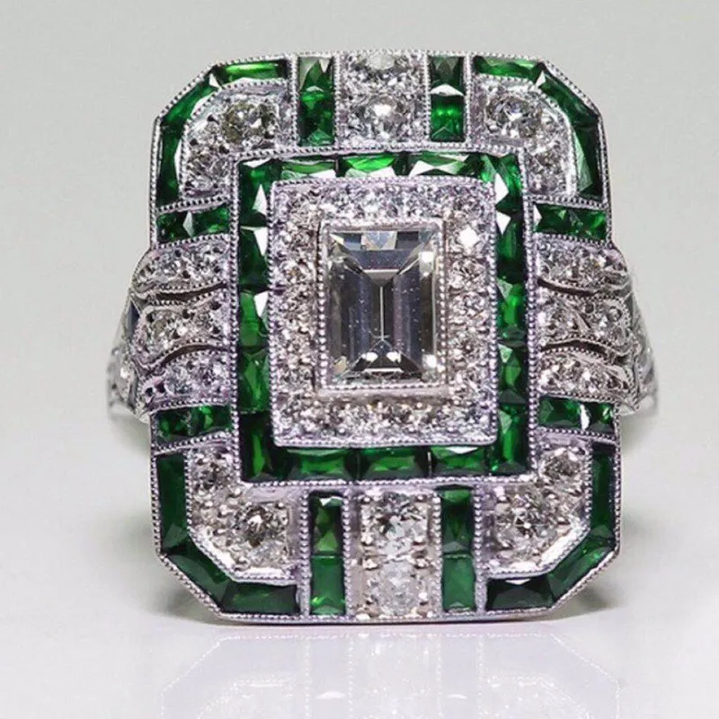 Винтажные большие квадратные кольца для женщин, зеленые, синие, кольцо с фиолетовыми кристаллами, роскошные геометрические циркониевые кольца, обручальное кольцо для невесты, подарок для женщин