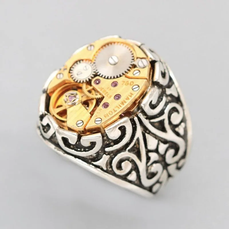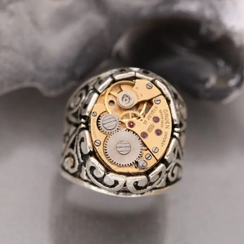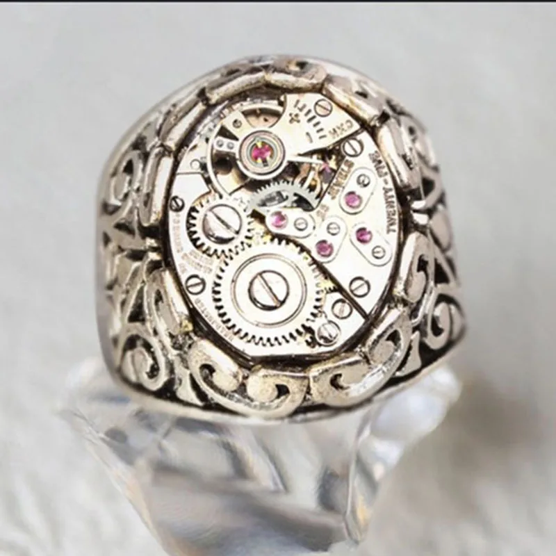 Мужские механические шестеренки в стиле стимпанк, винтажные прецизионные инженерные часы, шестеренки, дизайнерские кольца, уникальный подарок для пары