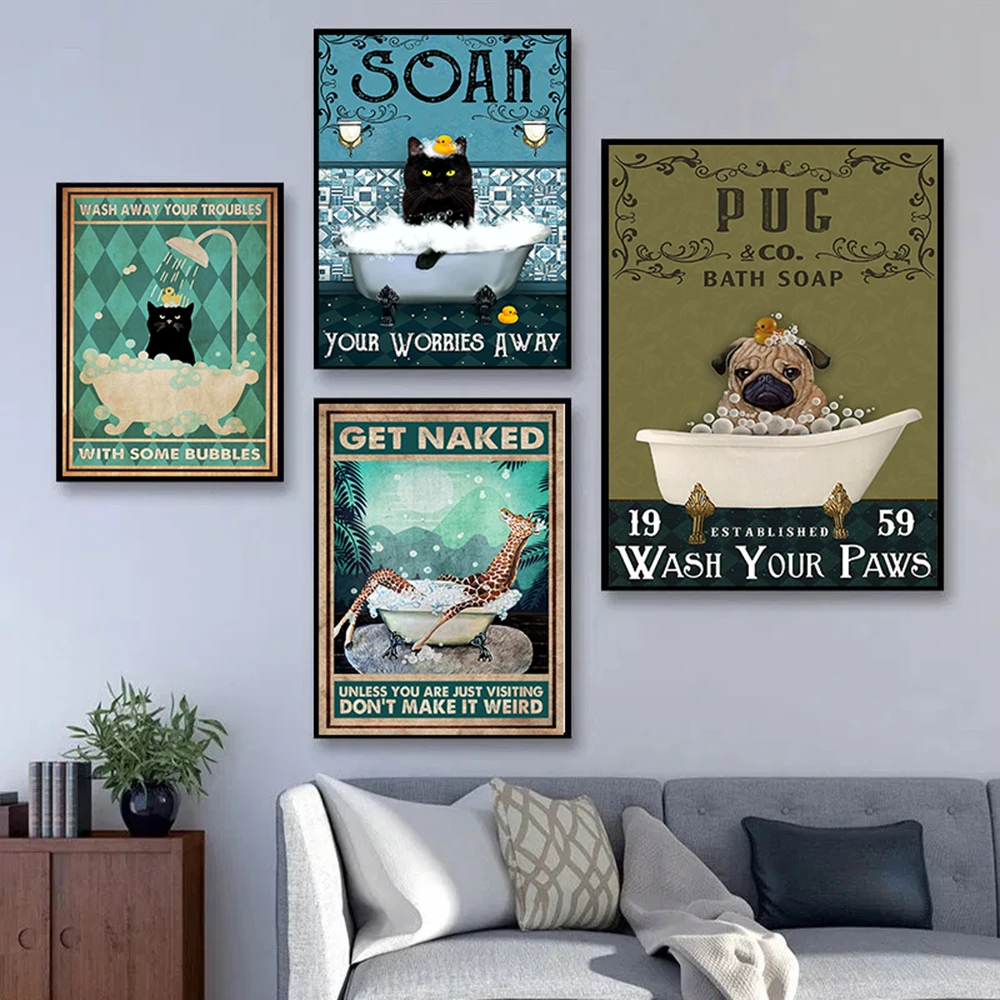 Кот Русалка Мопс енот панда Жираф ванна настенная Печать на холсте картина в скандинавском стиле настенные картины детская комната туалетный Декор