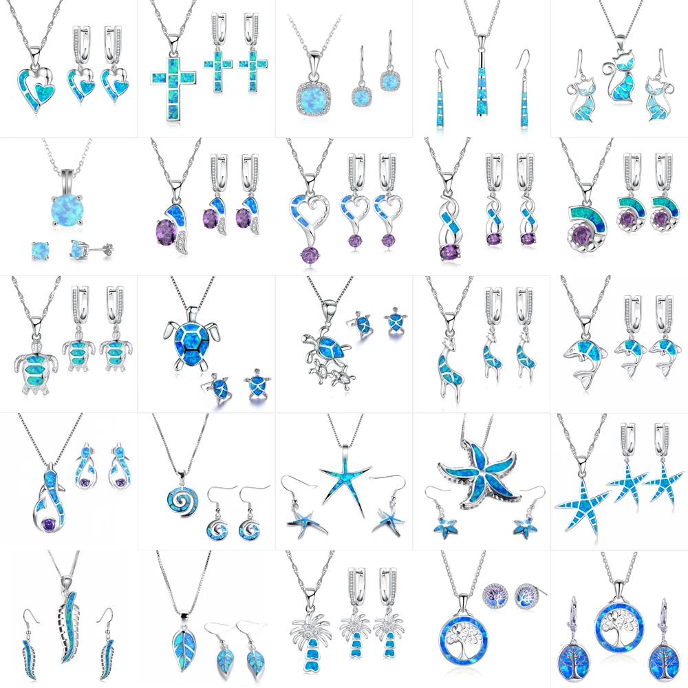 36 стилей трендовые геометрические формы набор украшений для женщин Имитация Синий огненный опал белый кристалл кулон ожерелье серьги ювелирные изделия