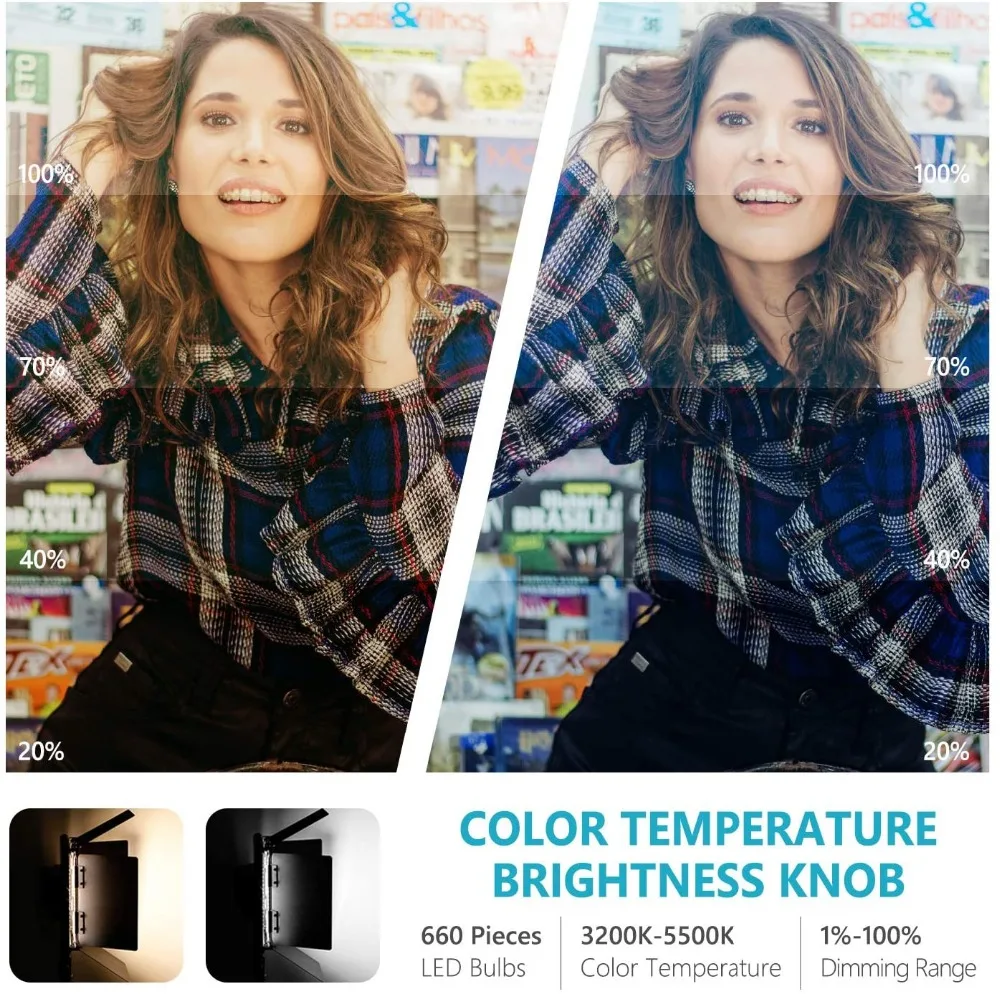 Neewer двухцветный светодиодный комплект для видеосъемки и подставки с аккумулятором и зарядным устройством-660 светодиодный Дов с U-образным кронштейном и дверью (3200-5600K, CRI 96 +), регулируемая световая подставка 3-6,5 футов для студии, съемки на YouTube