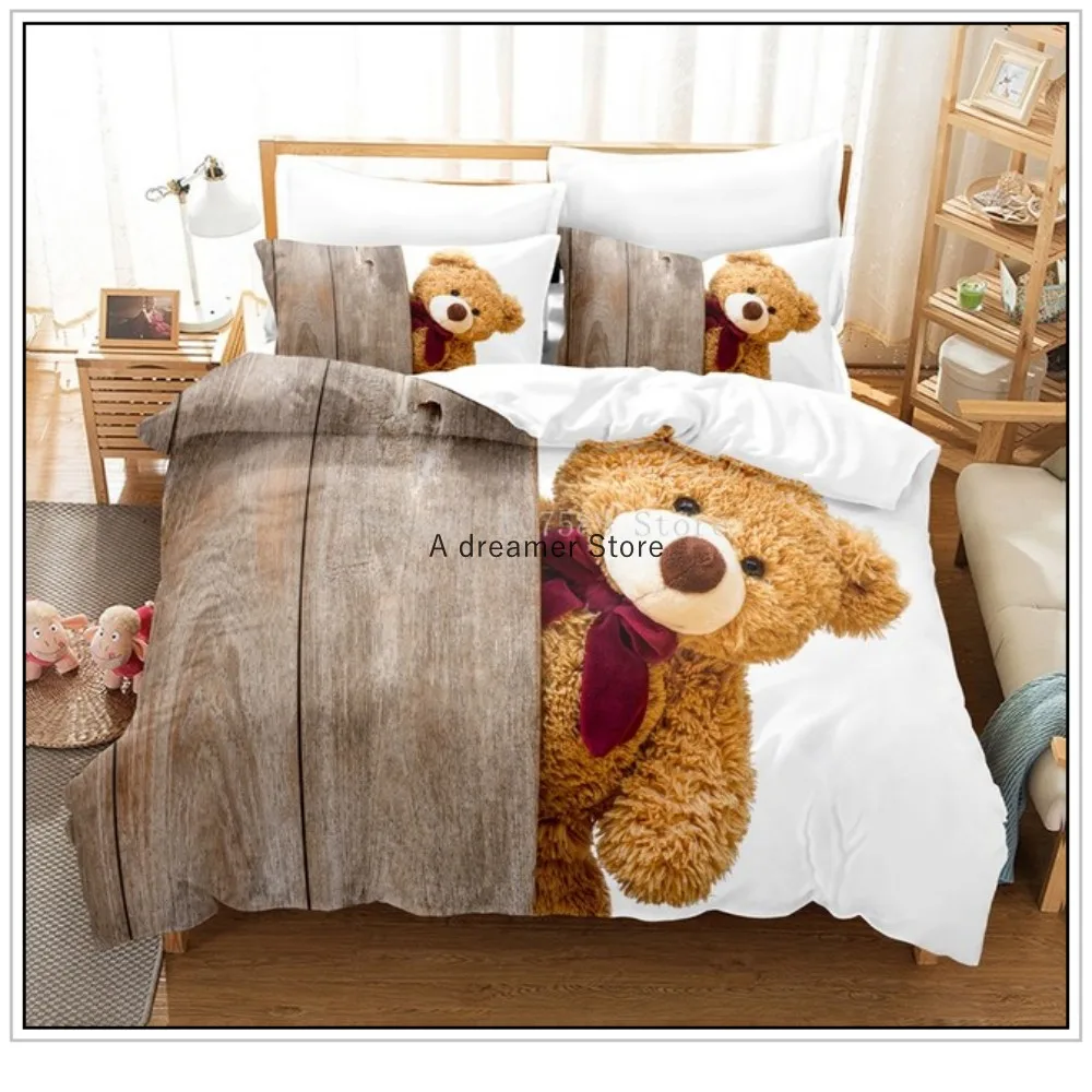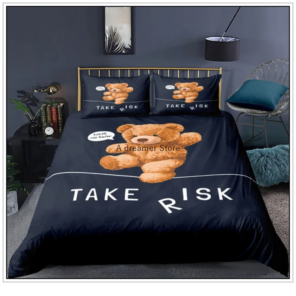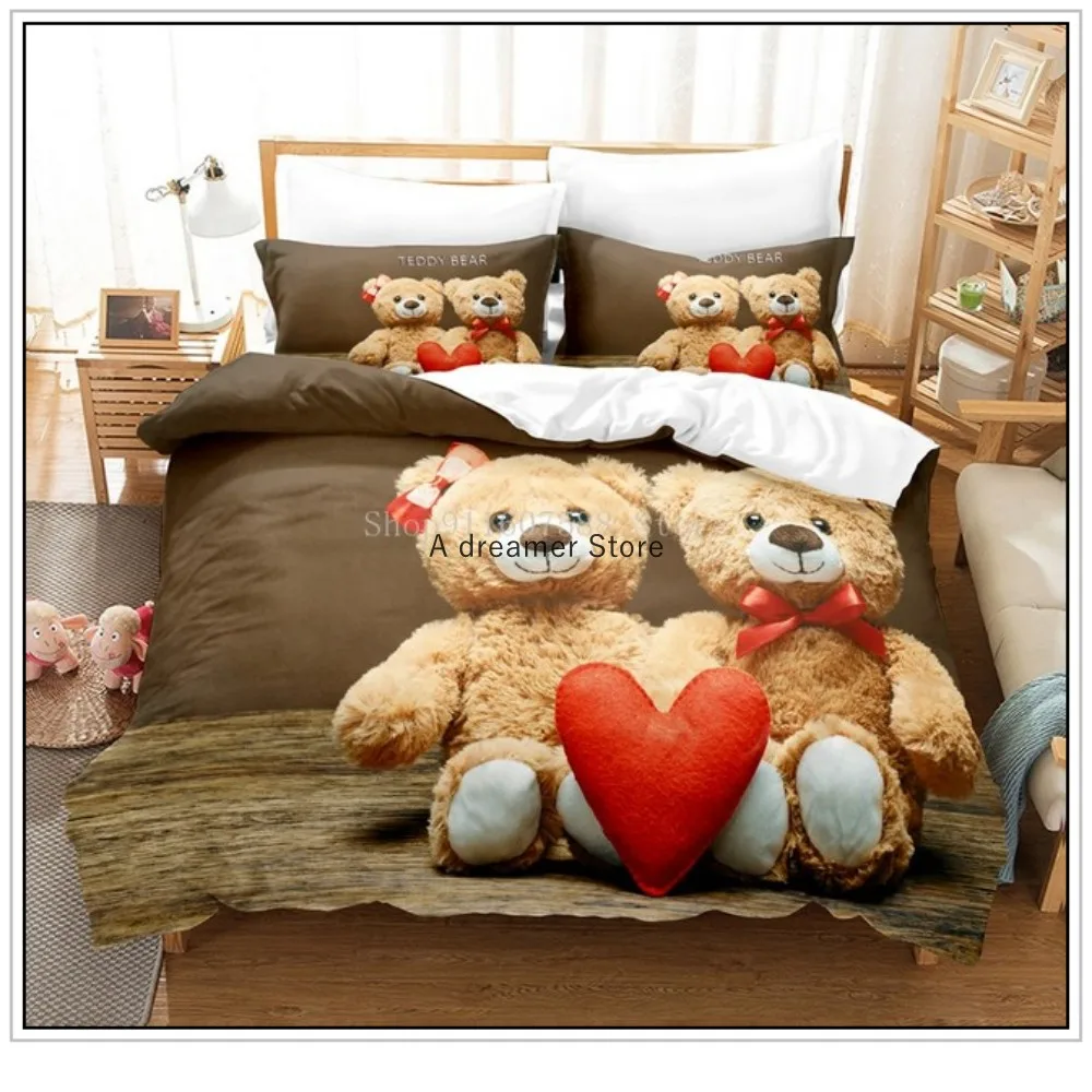 Комплект постельного белья с мультяшными медведями, милые одеяла, наволочки и наволочки, 220x24, 0 размеров, простое постельное белье для детей, Комплект постельного белья для влюбленных