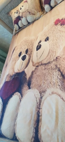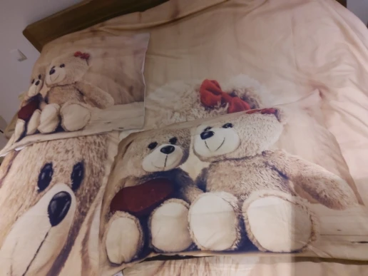 спасибо большое продавцу! Посылка пришла за 1,5 месяца до Омска. Качество хорошее, на пододеяльнике замок, размерам соответствует. на обратной стороне и наволочки и пододеяльник белые, а вот сам принт немного расстроил по рисунку на пододеяльнике, он чёткий, но силуэт мишек растянут, и выглядят немного не правильно, при том ,что на наволочках всё идеально. попыталась сфотографировать разницу, но сбоку плохо понятно, а когда встала напротив, то получилось изображение абсолютно такое же как на сайте, хотя на самом деле несколько искажено, но это не критично. Всё равно белье очень красивое. на ощупь шелковистое и очень приятное к телу, хотя и синтетика, но суперская, гладится очень легко. Товар и продавца очень рекомендую!!!