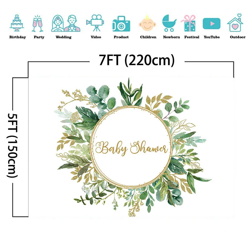 Фон для студийной фотосъемки Oh Baby с зелеными листьями и блестками