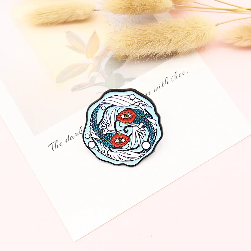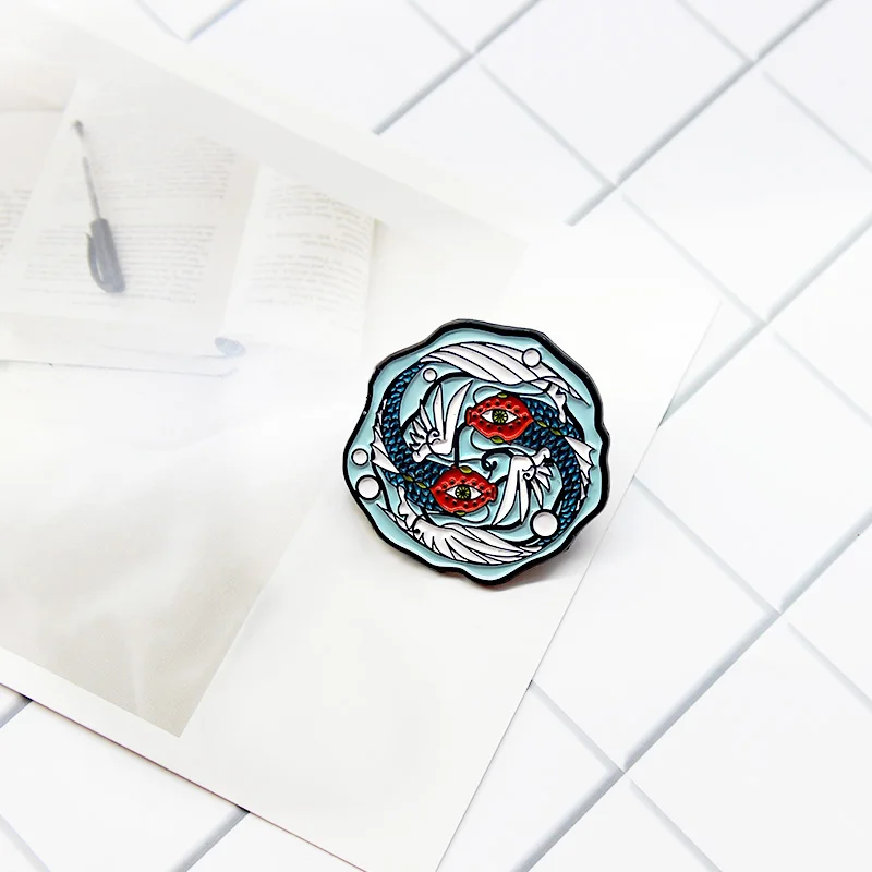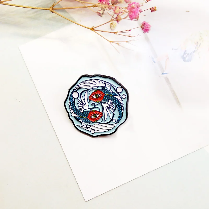 Броши рыба с милыми золотыми рыбками кои, синие эмалевые булавки с вращающимися рыбками Янь, рыбками-летячими рыбками, брошь для джинсовой сумки, значок на лацкан, ювелирные изделия с животными