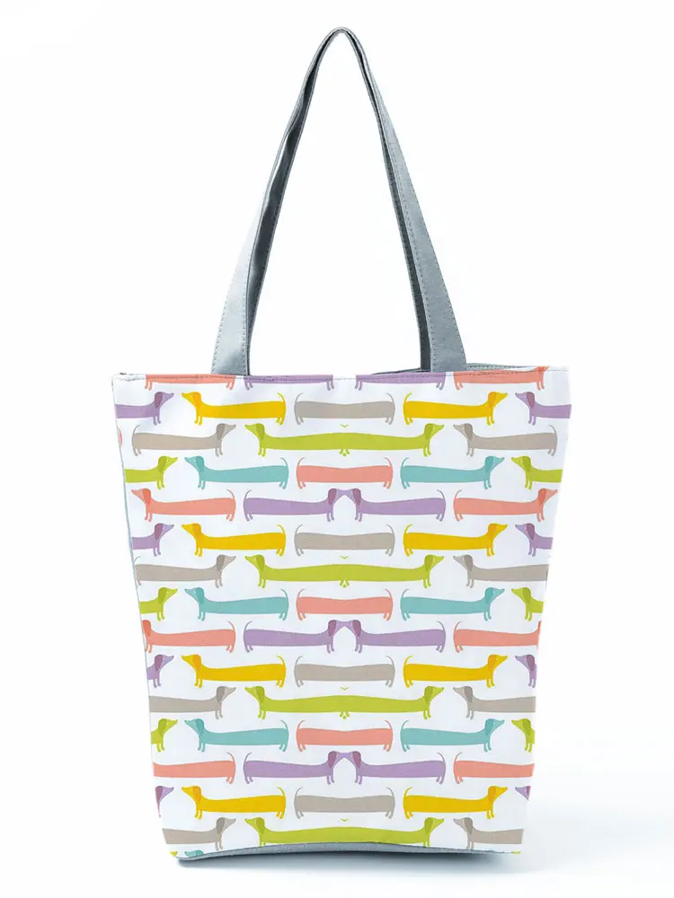 Женская сумка с мультяшным рисунком таксы, дорожная пляжная сумка через плечо, экологичная сумка для покупок с животными, кухонная многоразовая сумка для продуктов