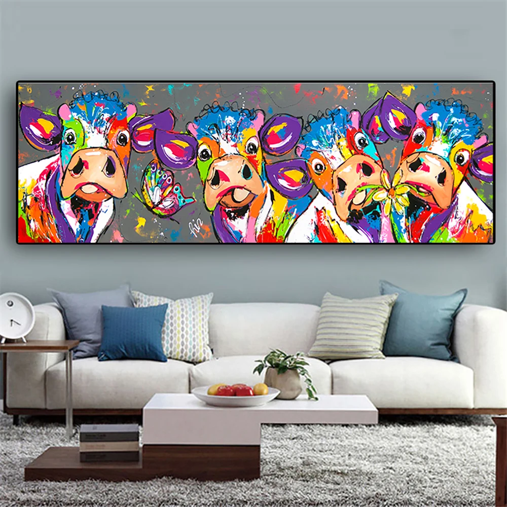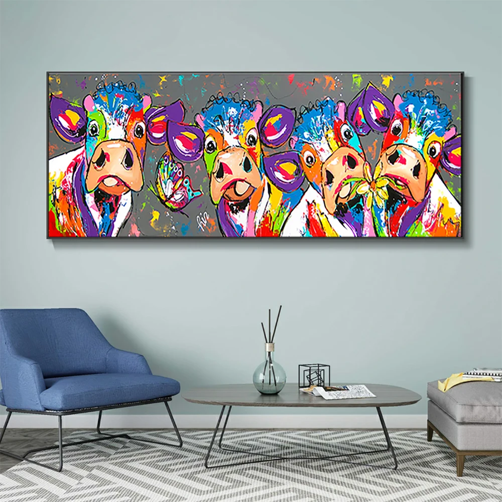 Абстрактная корова холст настенные картины художественные плакаты и принты Vrolijk Schilderij настенные декоративные картины для гостиной
