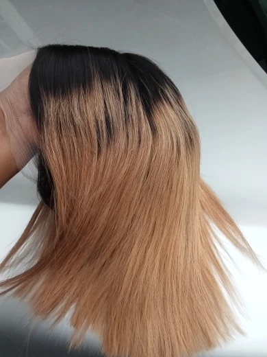 Парик на сетке 1B 27 с эффектом омбре, короткие натуральные волосы с фронтальной сеткой 13x4, с Реми, с медовым светлым кутикулом, цвет короткий, 4x4