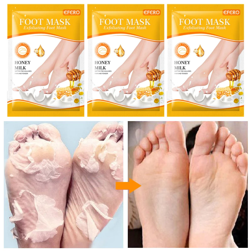 EFERO 30Packs мед, молоко отшелушивающая пилинг маска для ног удаление омертвевшей кожи Педикюр носки для пятки анти трещина отбеливающая маска для ног