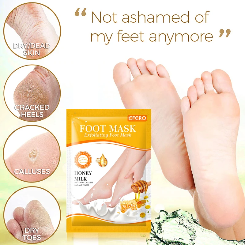 EFERO, 30 упаковок в партии мед, молоко Отшелушивающий отшелушивающая маска для ног, удалить омертвевшие чешуйки кожи и педикюрные носочки для пяток против трещин отбеливающая маска для ног