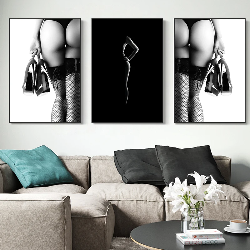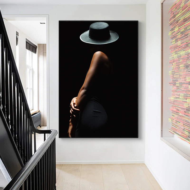 Черная сексуальная обнаженная женская фигурка на холсте, картина на стену, плакаты, принты, настенные картины для гостиной, домашний декор