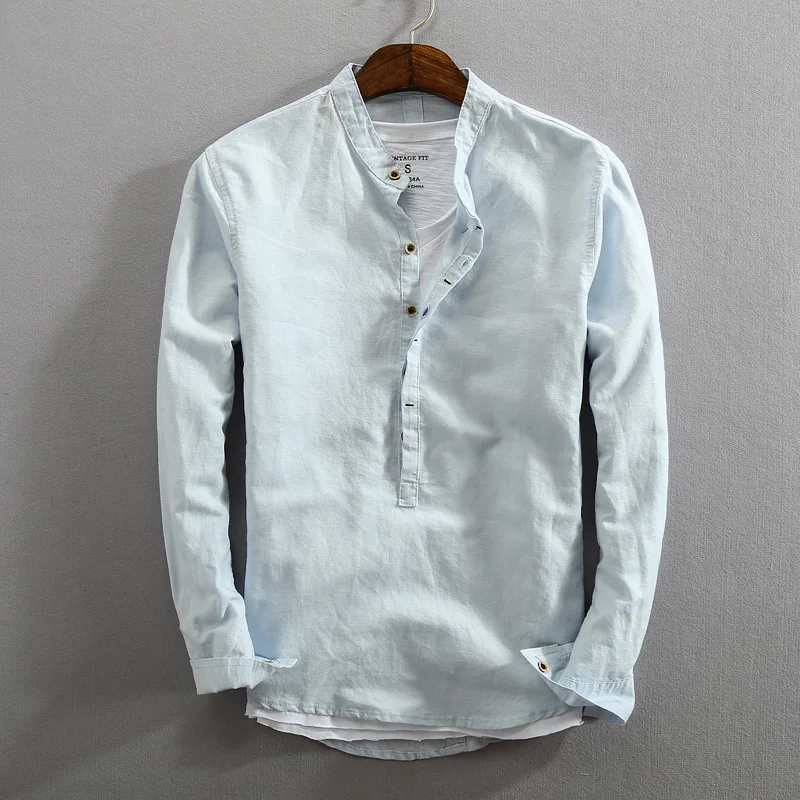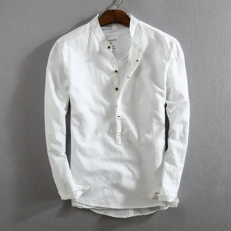 Рубашка мужская из хлопка и льна, однотонная, в стиле ретро, со стоячим воротником, размеры до 5XL, зима размера плюс