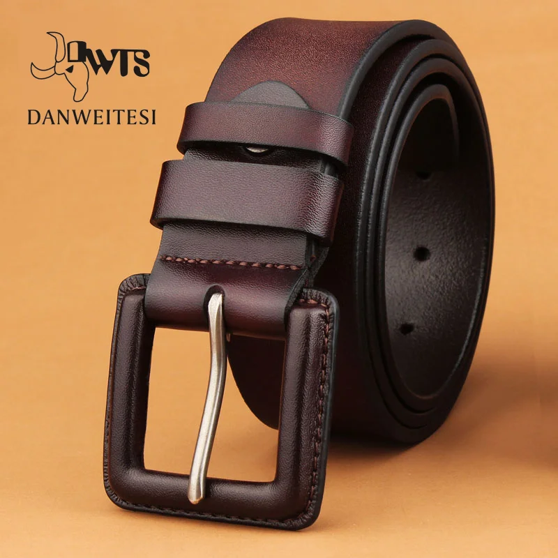 Мужской кожаный ремень большого размера DWTS, Черный Повседневный ремень из коровьей кожи, с металлической пряжкой, предотвращающей аллергию,