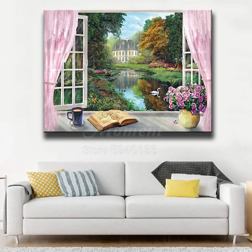 3D-картина с алмазным рисунком, пейзаж, дом, Lakeside, вилла, бусины, вышивка, картины для интерьера, домашний декор, художественное ремесло 4Y2116