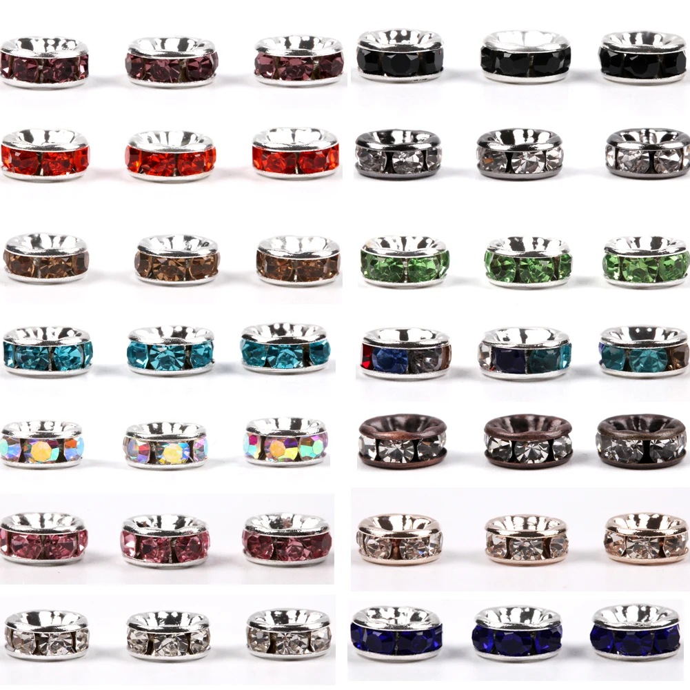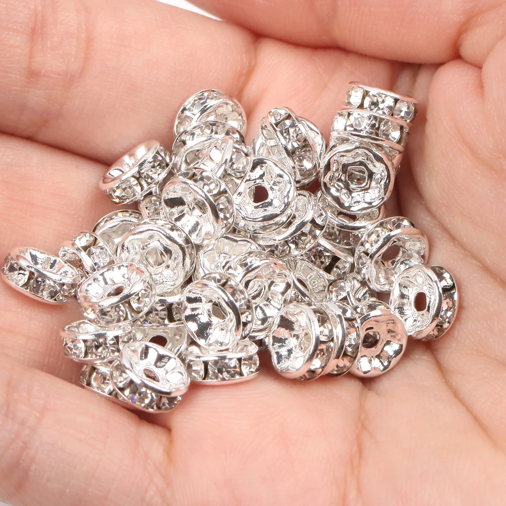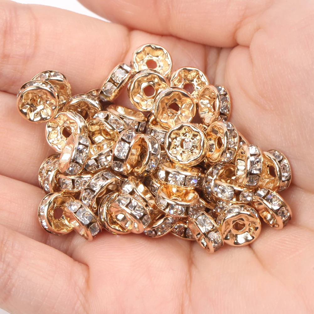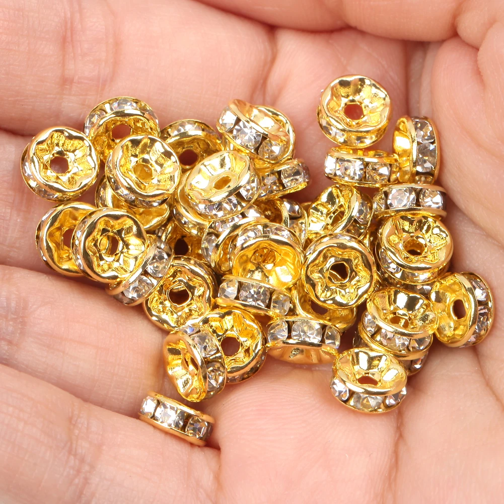 50 шт., золотые серебряные стразы, круглые кристаллы, бусины-разделители подвеска, аксессуары для самостоятельного изготовления ювелирных изделий 6, 8, 10 мм