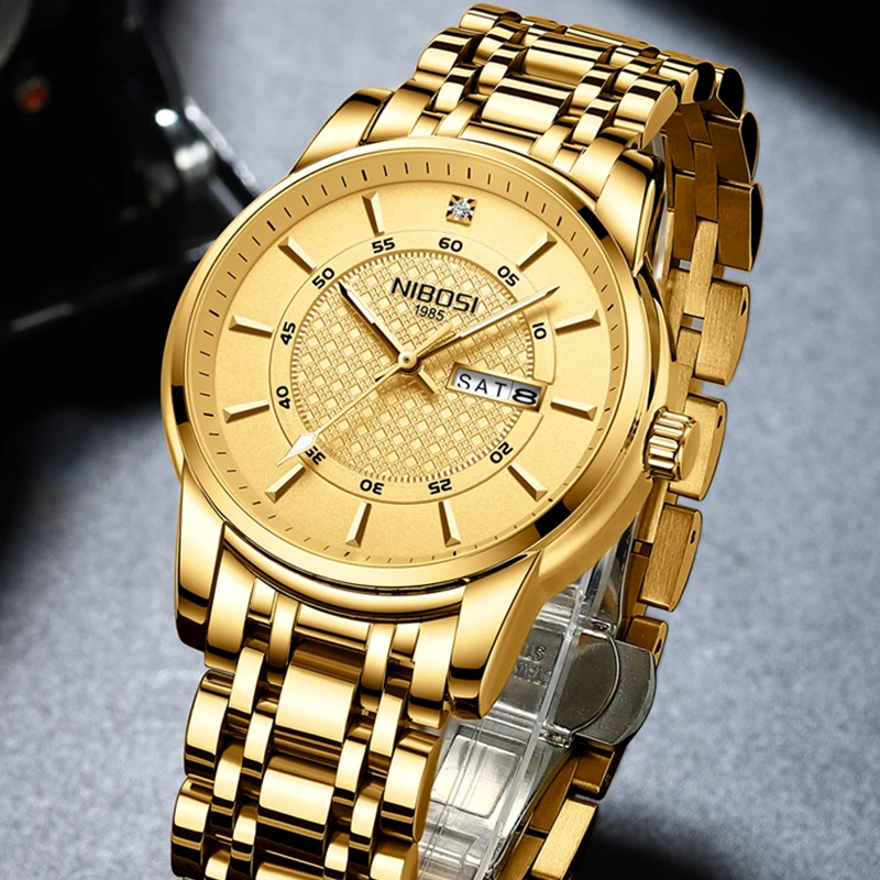 NIBOSI золотые часы для Для мужчин водонепроницаемая Спортивная Для...