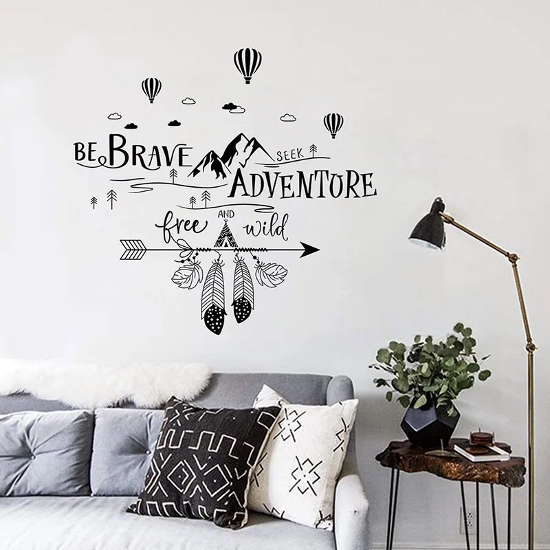 Be Brave Mountains Hot Air Balloons Wall Sticker Seek Adventure Travel Inspirational Quote Wall Decal Bedroom Vinyl Home Decor