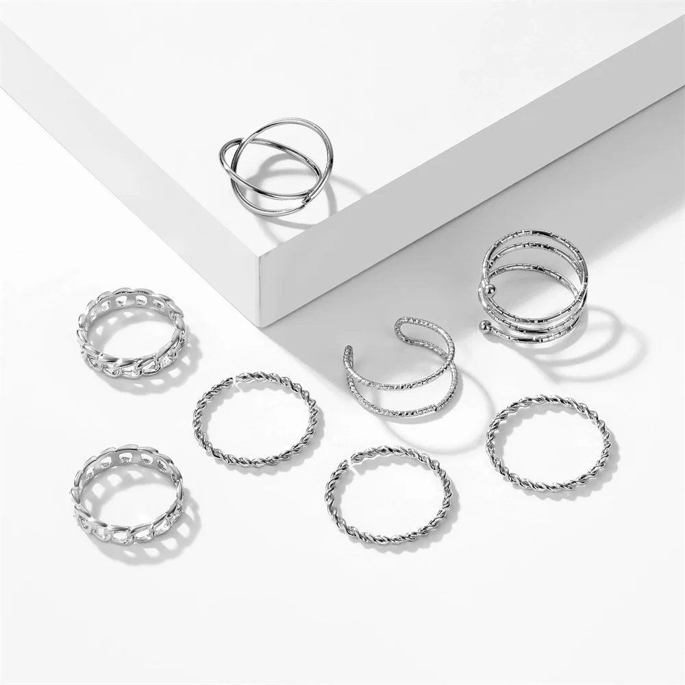 Набор Колец IPARAM в богемном стиле с ажурным крестом, комплект ювелирных украшений на суставы суставов, скрученный круг в ретро стиле, 8 шт.