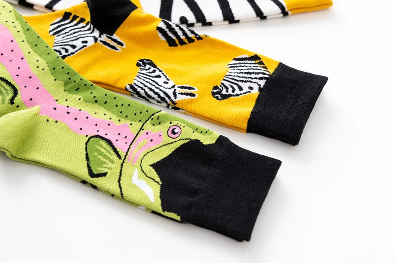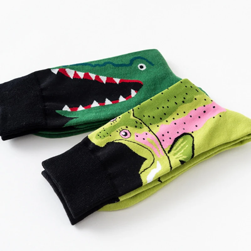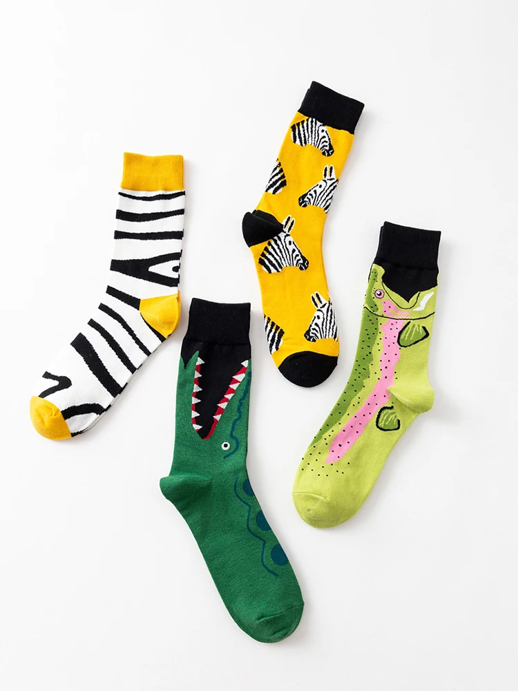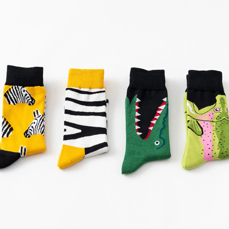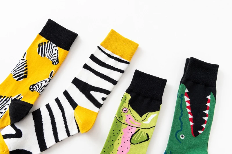 Носки унисекс, хлопковые, забавные, с принтом зебры, крокодила