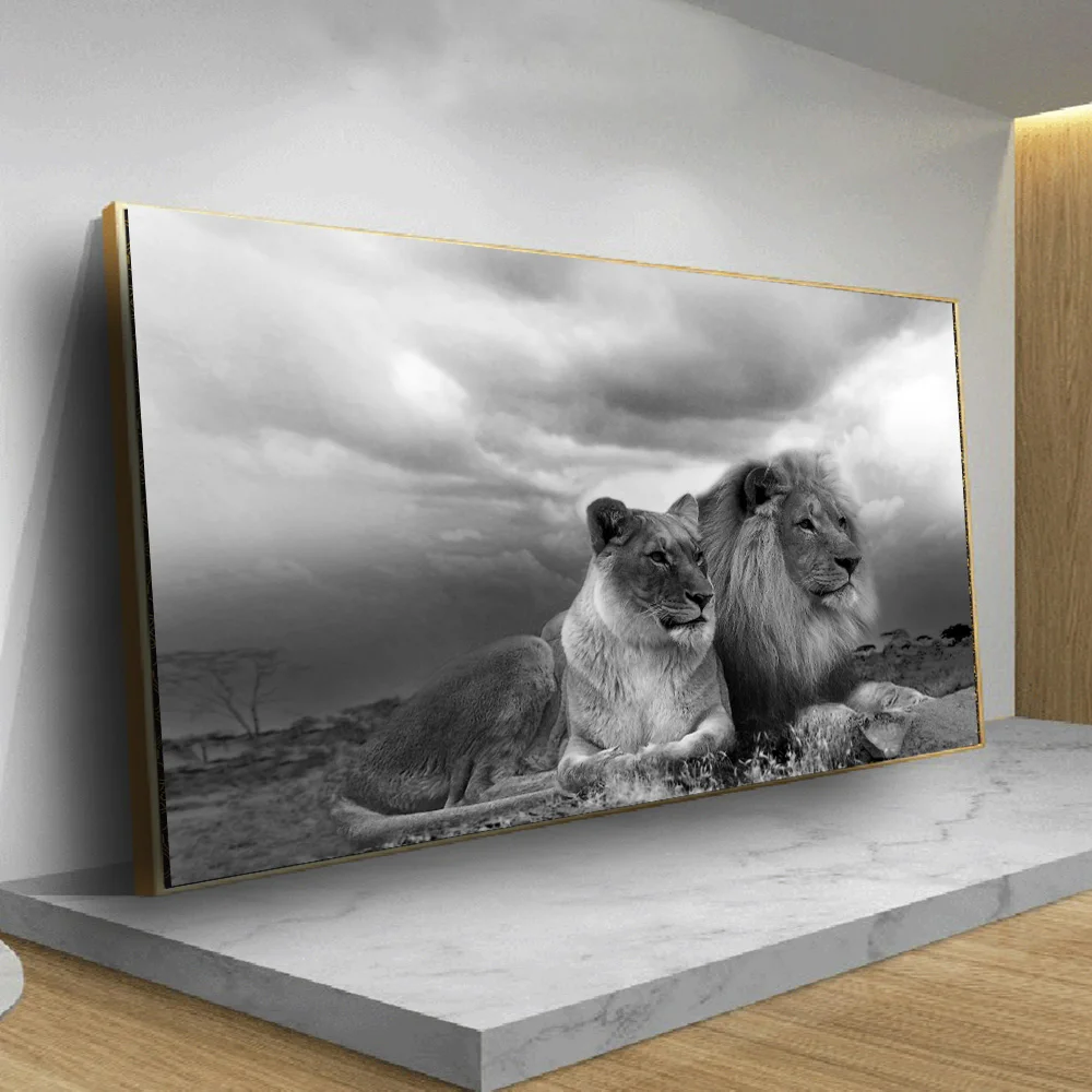 Картина на холсте с животными, черно-белая, в африканском стиле