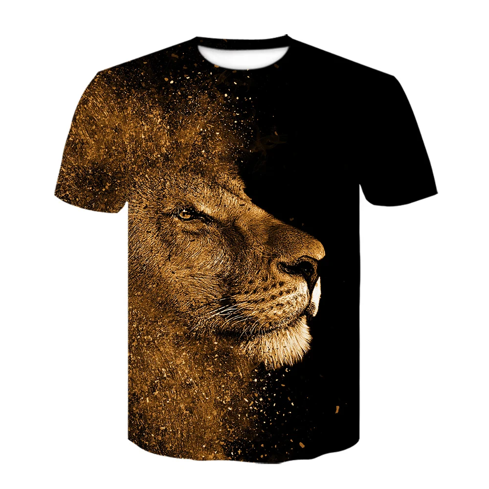 Пользуются большим спросом; 3D печать Золотой Лев футболка с изображением животного для мужчин и женщин с О-образным вырезом, черная футболка Повседневная дышащая обувь в стиле хип-хоп простая футболка s-6xl
