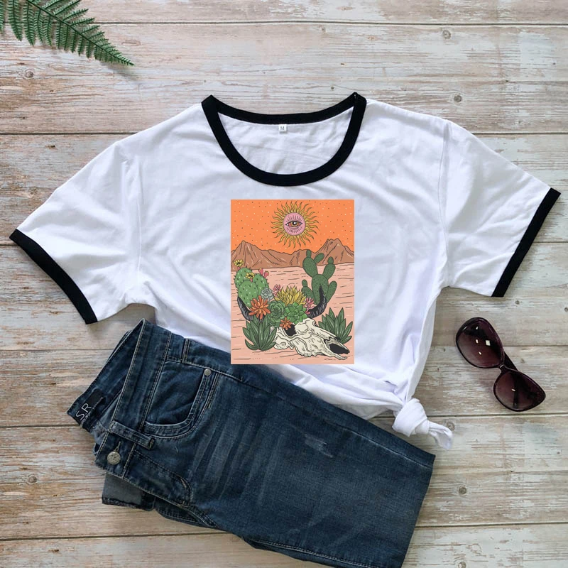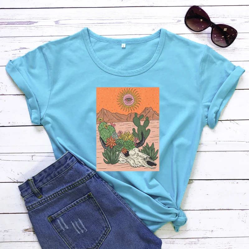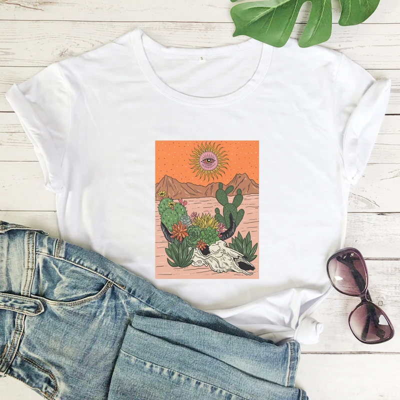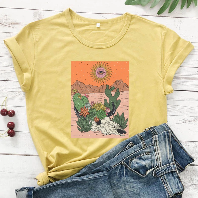 Цветная футболка Desert Vibes из 100% хлопка, Винтажная футболка с изображением кактуса, быка, черепа, модная женская футболка с графическими приключениями, топ, футболка