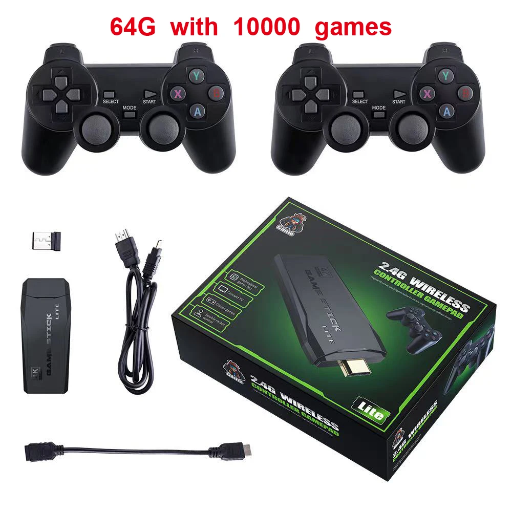 Беспроводные игровые консоли 4K HD 2,4G 10000 игр 64 Гб ретро мини ...