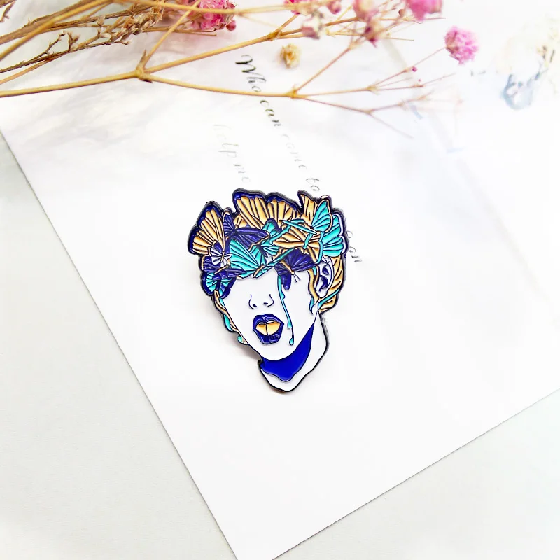 Женская Брошь с рисунком грустного мультфильма синяя желтая бабочка эльфов девушки эмалированные заколки сумка брошь на лацкан детский значок ювелирные изделия оптовая продажа