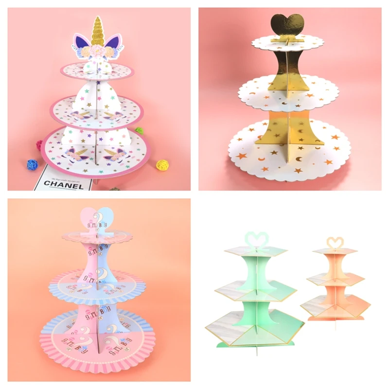 3-Слои одноразовые круглый день рождения кекс и других десертов с Бумага ремесло стенд десерт Дисплей стеллаж для выставки товаров Свадебная вечеринка поставки Инструменты для тортов