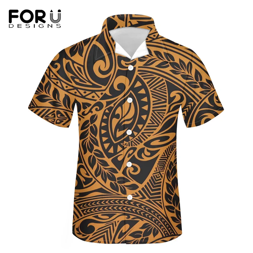 FORUDESIGNS летние мужские рубашки, полинезийское племя, Дизайнерск...