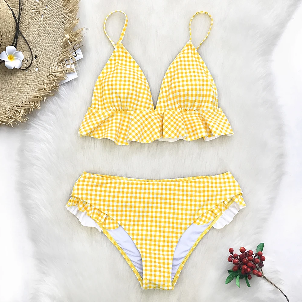 CUPSHE, сексуальные, желтые, с завязками спереди, волнистые бикини,...