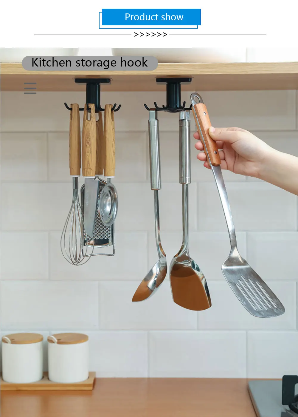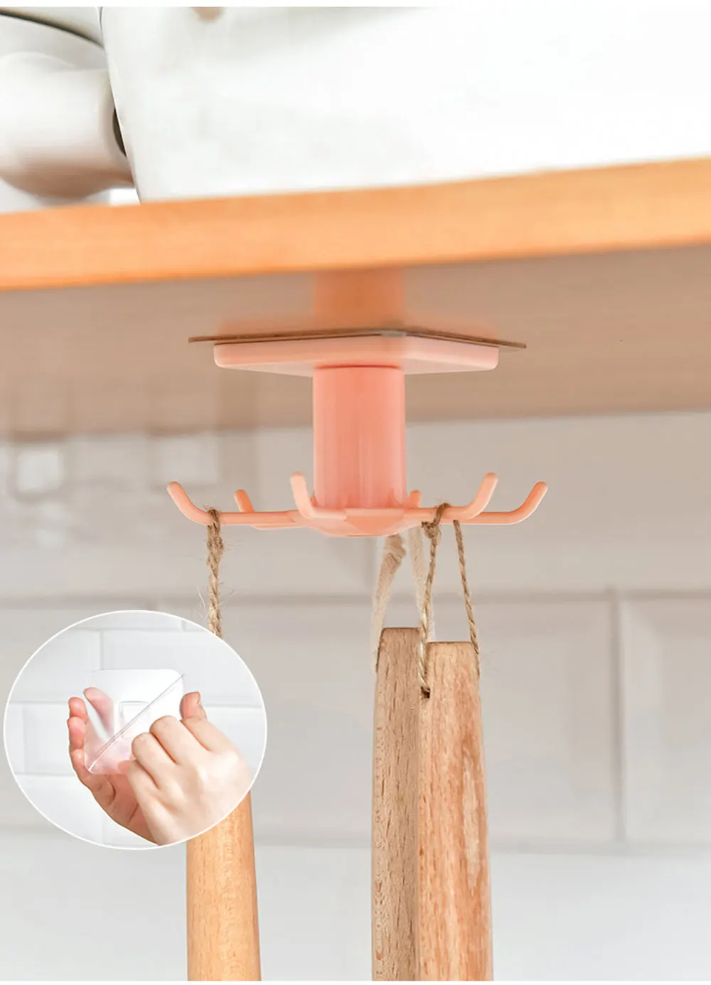 Кухонные крючки с поворотом на 360 градусов, самоклеящиеся кухонные аксессуары с 6 крючками, держатель для столовых приборов, сушилка для посуды, тканевый держатель для галстука, подвесная стойка