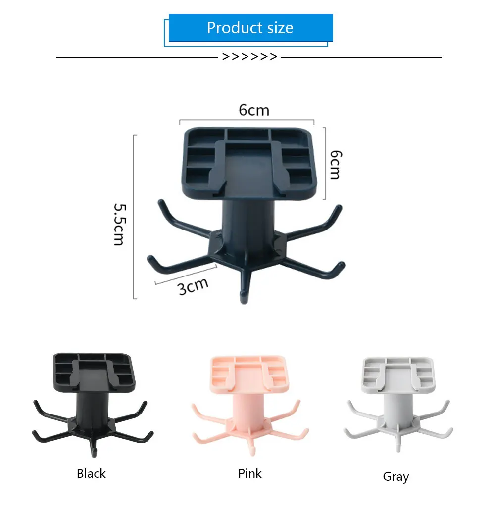 О продуктеКомплектация: 1 x стеллаж для храненияЦвет: черный, серый, розовыйМатериал: АБС-пластикРазмер изделия: about6 * 6*5,5 смПрименимые случаи:1. Вращающийся дизайн, экономит много места для вас. Прочный, практичный.2. Никаких следов крючка, оторвать пленку и наклеить, рекомендуется использовать его после 24 часов установки, эффект будет лучше.3. Идеально подходит для использования в гостиной, кухне, спальне, комнате для учебы, столе, ящике, шкафу. Может использоваться для хранения кухни, ванной комнаты и т. д.