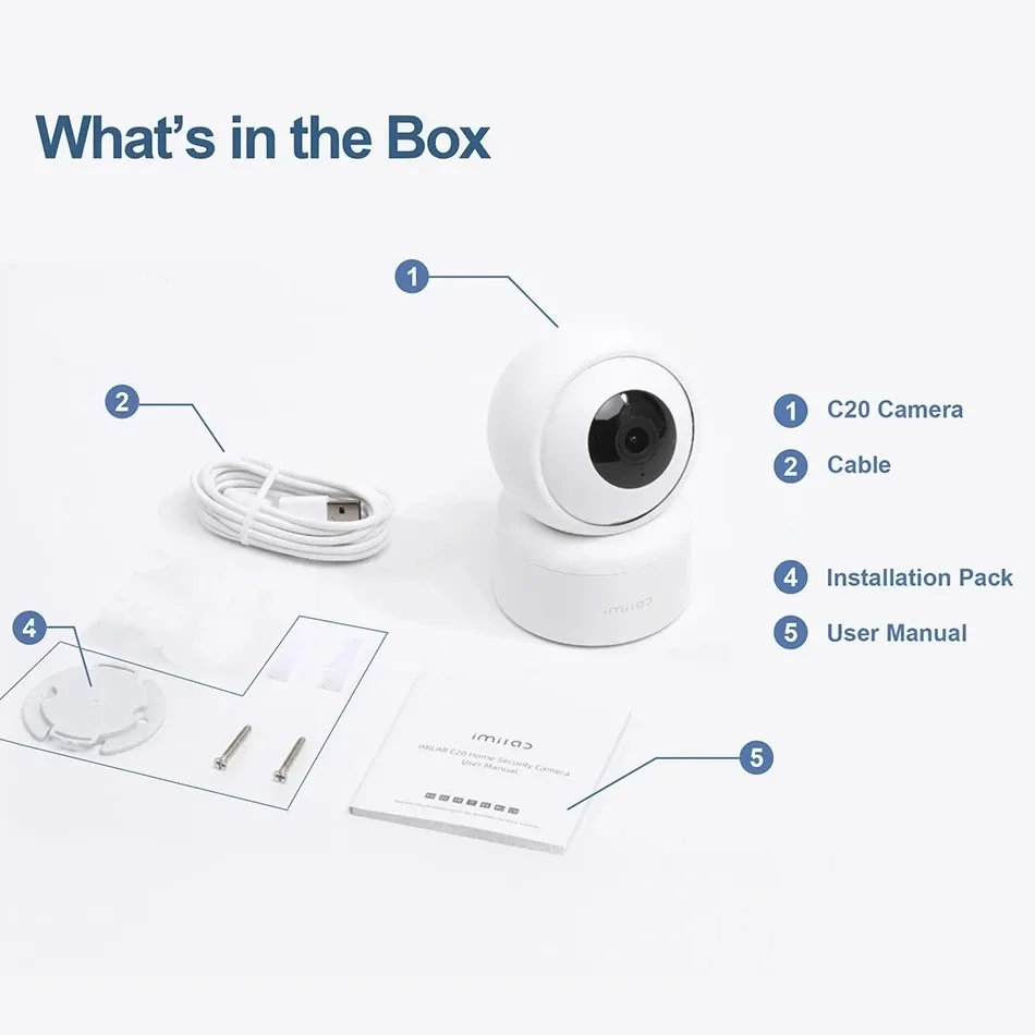 Модель: C20 (CMSXJ36A)Цвет: белыйРазмер: 112*76*76 ммРазмер посылка: 160*90*90 ммВес: 211 гВход питания: 5V-2AСвязь: Wi-Fi 2,4 ГГцДиафрагма: F2.1Разрешение: 1080PФокус: 3,71 ммУгол: 105Ночное видение: 4 * 850нм инфракрасный светодиодныйРасстояние: 10 мГолос: двунаправленныйХранение: облако, Micro SD (макс. 64 ГБ)
