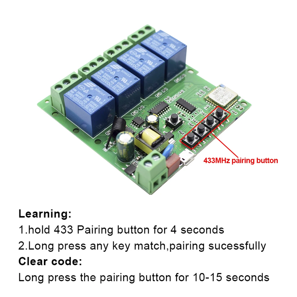 Этот продукт является беспроводным переключателем, поддерживающим режим инширования/самоблокирования. Пользователи могут добавить устройство в приложение Smart life для удаленного управления подключенными бытовыми приборами или устройствами. В режиме самоблокировки клиенты могут удаленно включать/выключать подключенные устройства немедленно. В режиме инчинга клиенты могут выбрать два способа подключения, и вы можете установить время инчинга в приложении. Модель управления WIFi, не нужно программировать. Независимо от того, где вы находитесь, вам нужно только загрузить приложение для подключения wifi и управления облаком. Режим RF, вы можете управлять доской с пультом дистанционного управления RF433.