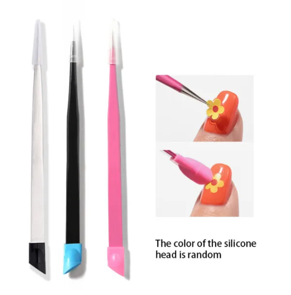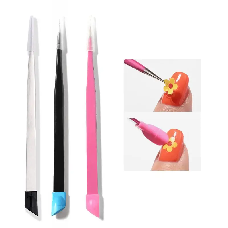 Пинцет для ногтей с силиконовой насадкой, для наклейки Стразы, прямой изогнутый инструмент для нейл-арта из нержавеющей стали
